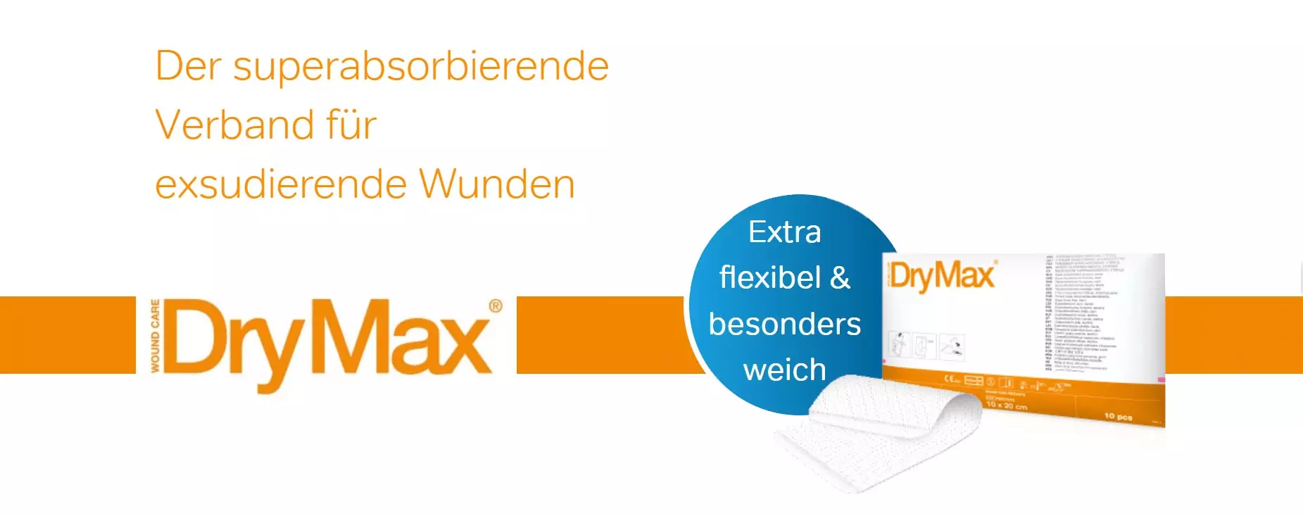DryMax® Soft ist eine sterile, superabsorbierende Wundauflage zur Behandlung von exsudierenden Wunden. DryMax® Soft absorbiert Wundflüssigkeit und bindet sie im Verbandstoff. Die Wundflüssigkeit wird von der Auflage aufgesaugt und im Kern in Form eines Gels gespeichert, wodurch das Risiko von Mazeration (Aufweichung) minimiert wird. DryMax® Soft kann unter Kompressionsverbänden verwendet werden und bleibt in allen Stadien der Exsudataufnahme weich und anschmiegsam. Das Design der Auflage ermöglicht die beidseitige Anwendung des Verbandstoffs in Richtung Wunde.